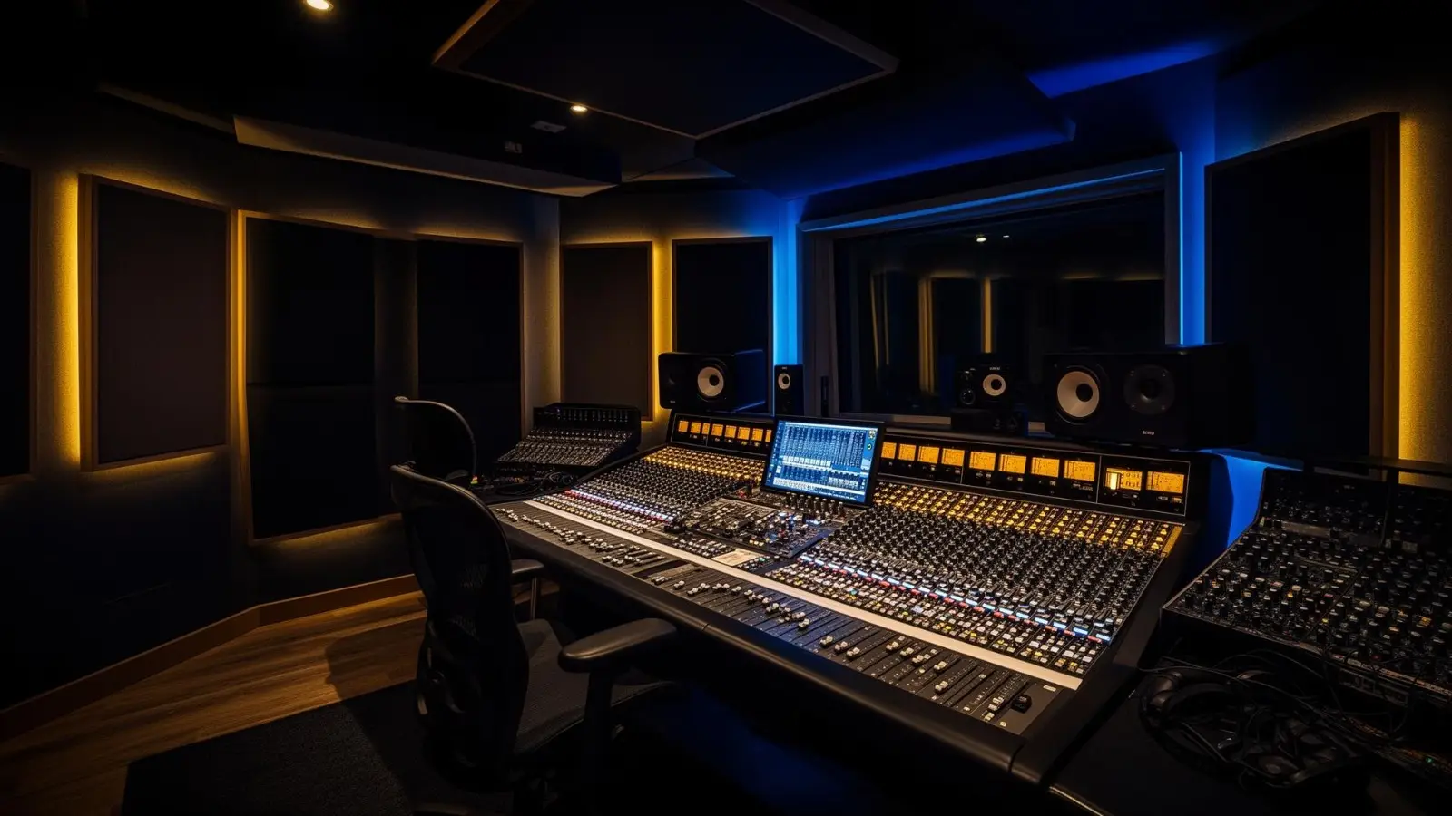 Console SSL, microphones Neumann, monitoring Genelec sur traitement acoustique calibré. Un environnement pensé pour capturer votre signature sonore sans compromis.